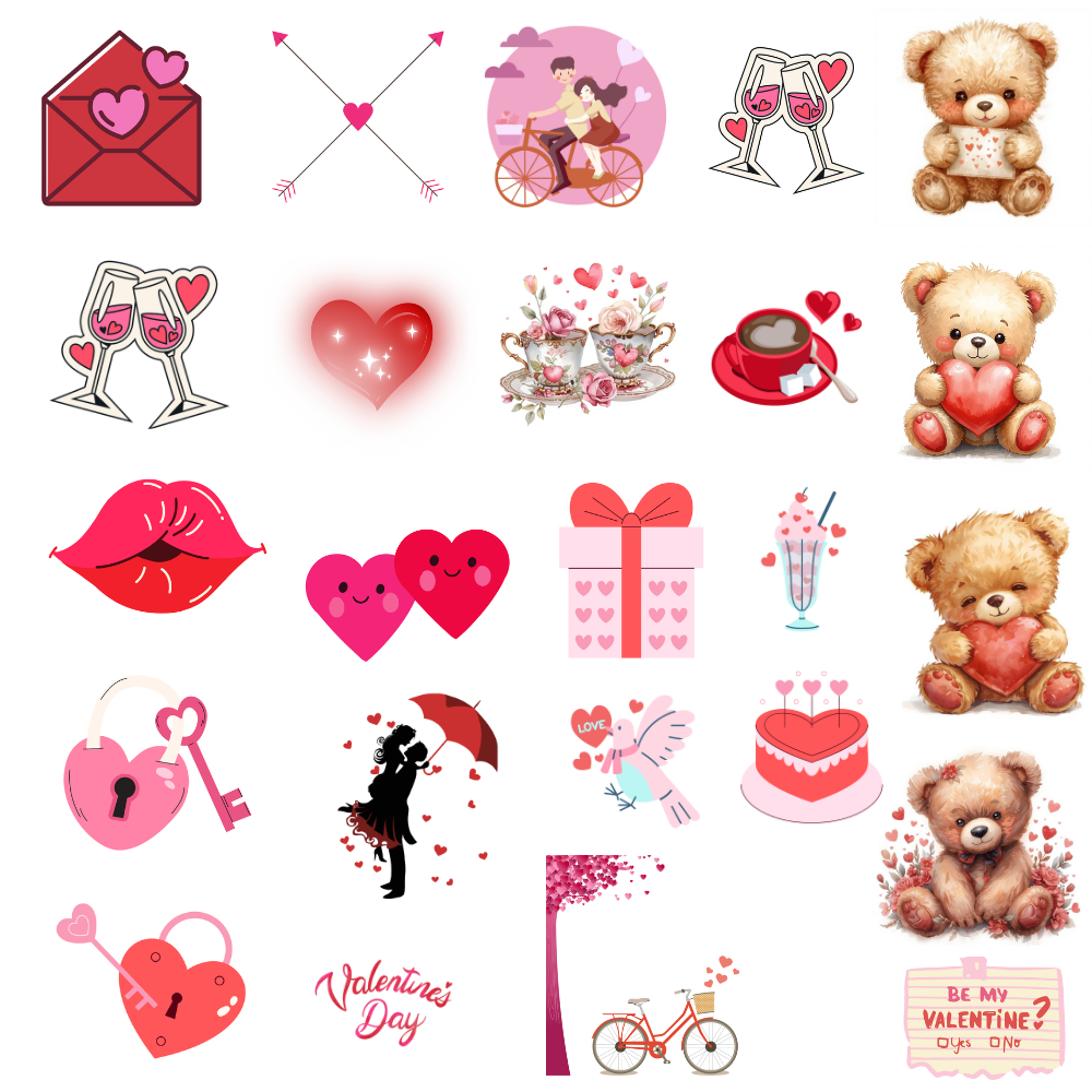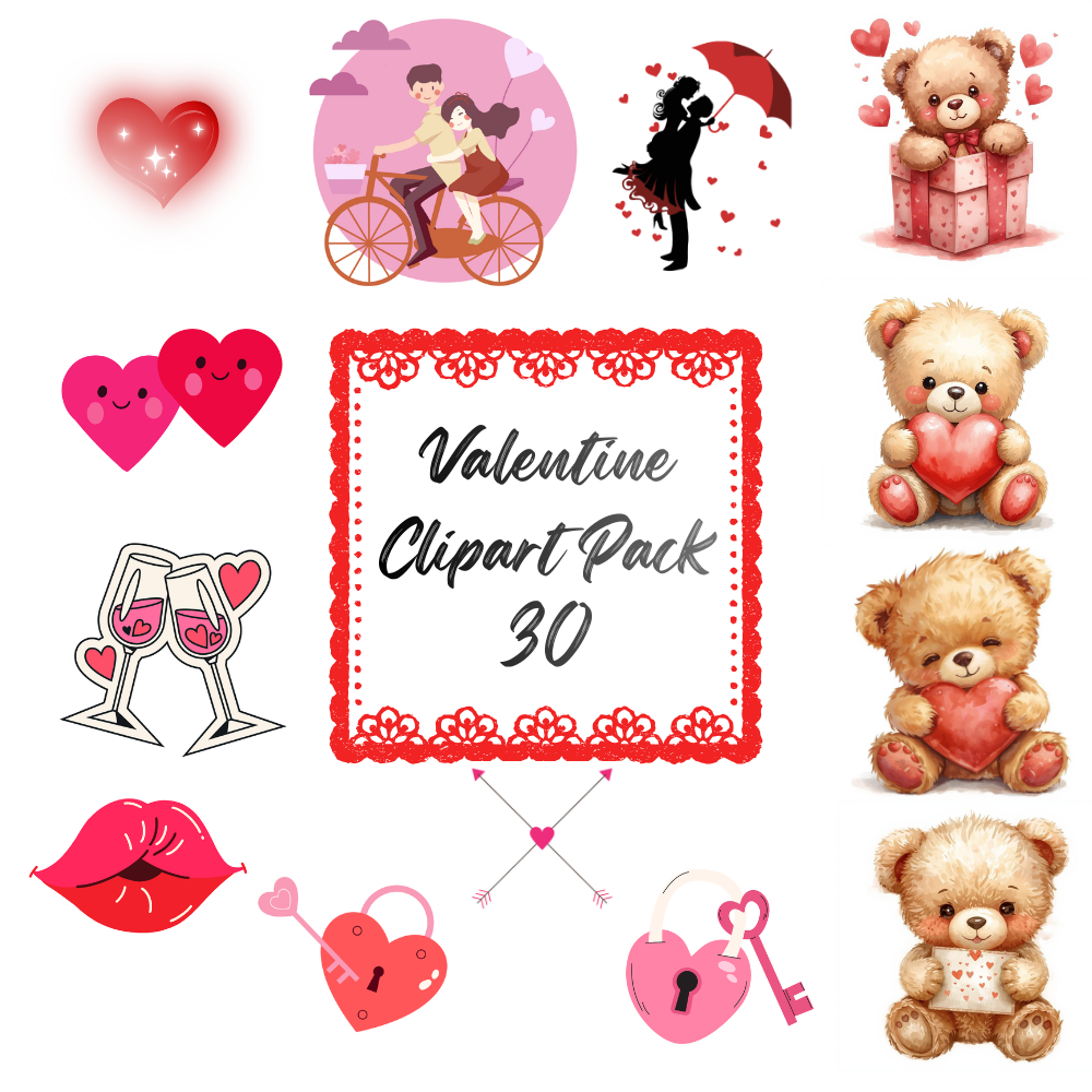 50 Valentine-themed clipart elements